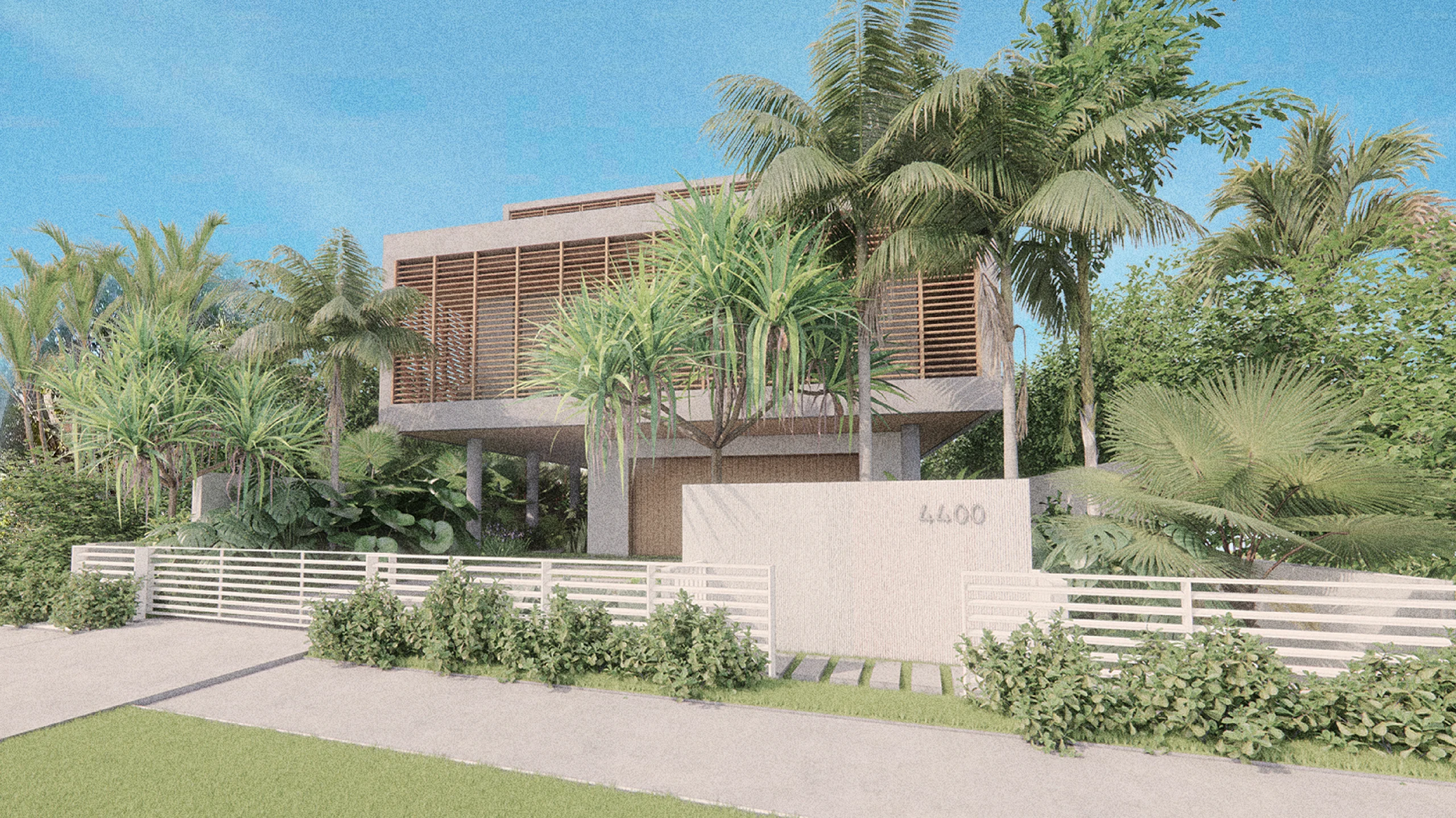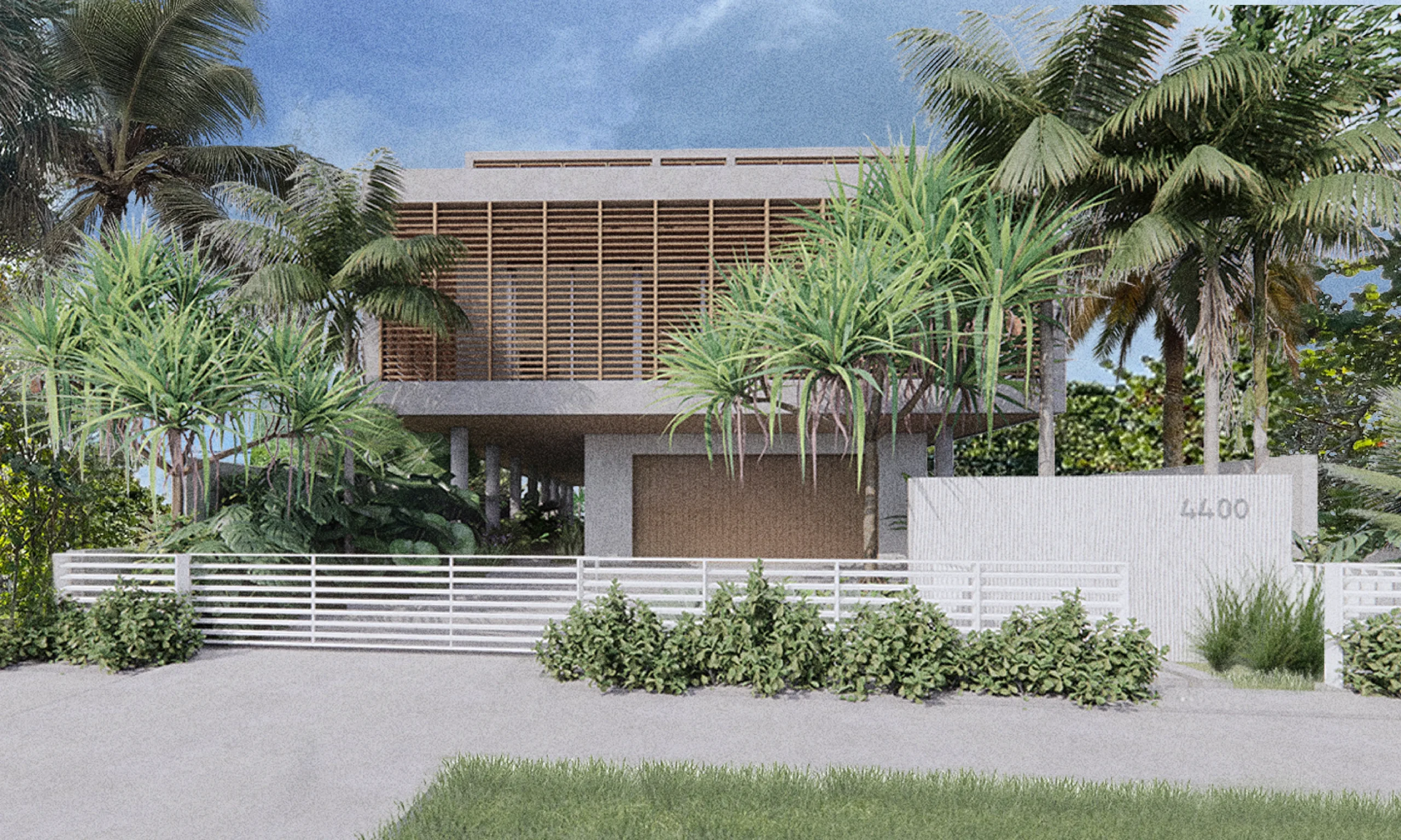 SITUATED ON A SITE WITH PUBLIC PARKS ON EITHER SIDE OF THE PROPERTY, THE INTRACOASTAL WATER WAY TO THE WEST, AND A STATE HIGHWAY TO THE EAST, THIS PROJECT POSED MANY CHALLENGES DUE TO ITS TIGHT CONSTRAINTS AND THE CLIENTS’ DESIRE FOR A PRIVATE AND PROTECTED HAVEN. FLOOD AND HURRICANE RISKS DROVE THE CLIENT TO PURSUE A “HOUSE ON STILTS” CONCEPT, WHERE MOST OF THE HOUSE IS ELEVATED 12’ ABOVE GRADE AND NEARLY 20’ ABOVE SEA LEVEL.