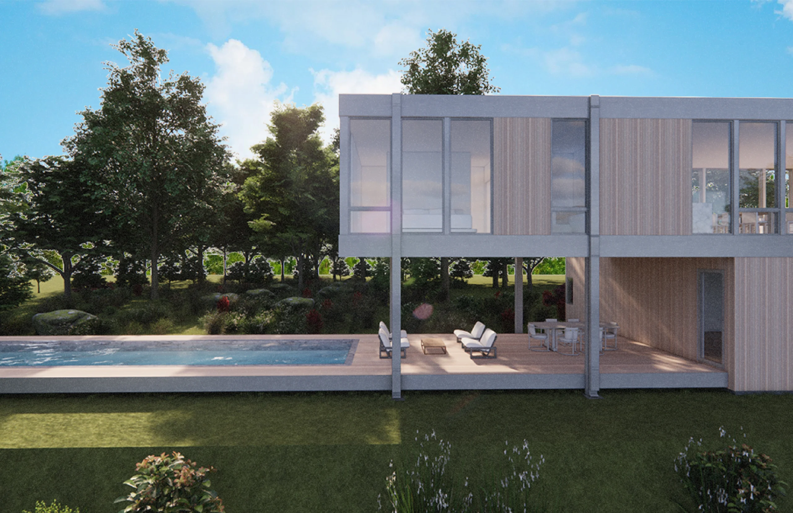 BALANCING LUXURY AND PRACTICALITY, THIS HOME IS DESIGNED USING STANDARD WINDOW , DOOR AND WALL PANELING SIZES TO REDUCE CONSTRUCTION COSTS. CAREFULLY DETAILED ELEMENTS AND THOUGHTFULLY SELECTED MATERIALS ENSURE DURABILITY.